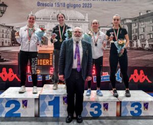 La prima gara gold della quattro giorni è stata quella di sciabola. Vittoria per Amelia Giovannelli che nel match di finale ha battuto all’ultima stoccata Sofia Albieri del Petrarca Scherma per 15-14. L’atleta dei castelli romani aveva avuto la meglio su Chiara Resciniti (medaglia di bronzo) del Champ Napoli 15-13. La Albieri, nella parte alta del tabellone, aveva vinto contro l’altra atleta del Frascati Scherma, Francesca Burli, con il punteggio di 15-7.