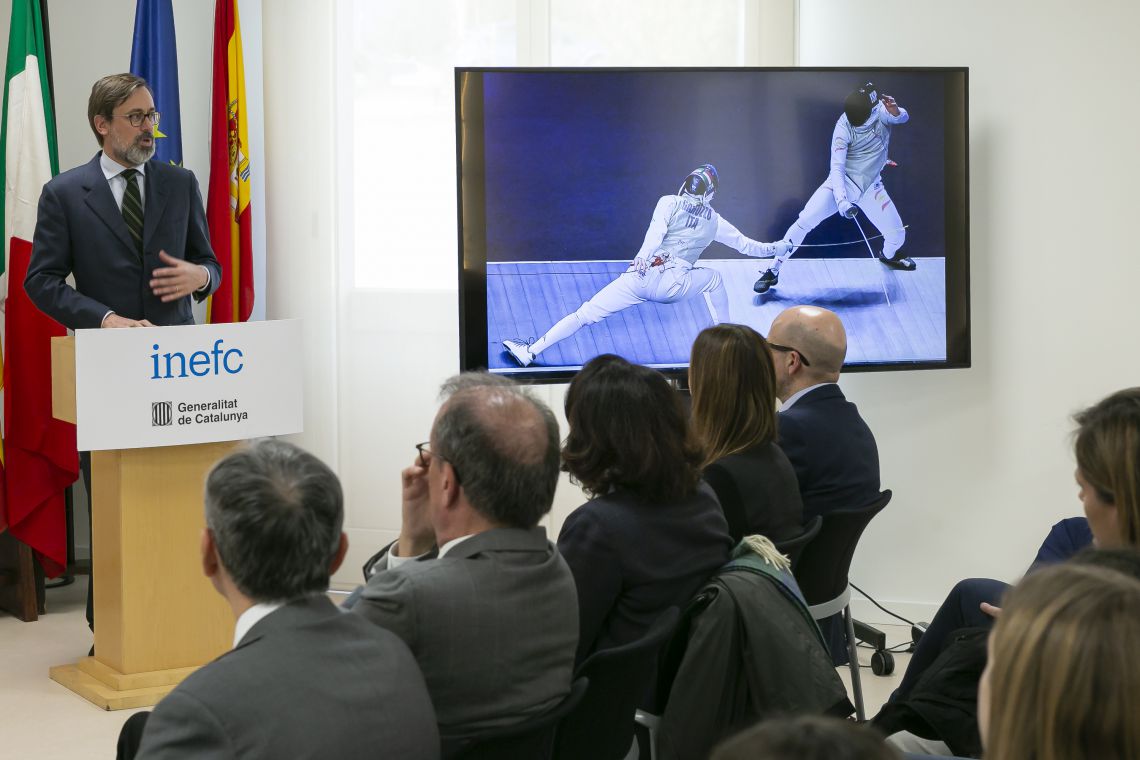 L’evento “Lo Sport e la Scherma. Un affondo per il futuro”, tenutosi presso l’Istituto Nazionale di Educazione Fisica di Catalogna (INEFC), è stato aperto dal Console Generale, Emanuele Manzitti. Nel corso dell’evento sono intervenuti i Presidenti delle quattro Federazioni, Giorgio Scarso (Confederazione Europea) Paolo Azzi (Federazione Italiana Scherma), Josè Luis Abajo Gòmez (Federazione Spagna), Miquel Ojeda Ciurana (Federazione Catalogna) e le campionesse della spada azzurra Mara Navarria, Rossella Fiamingo e Alberta Santuccio, che hanno tenuto una interessante sessione interattiva con il pubblico (circa 50 persone) tra cui erano anche presenti alunni della Scuola Italiana di Barcellona che praticano la scherma.
